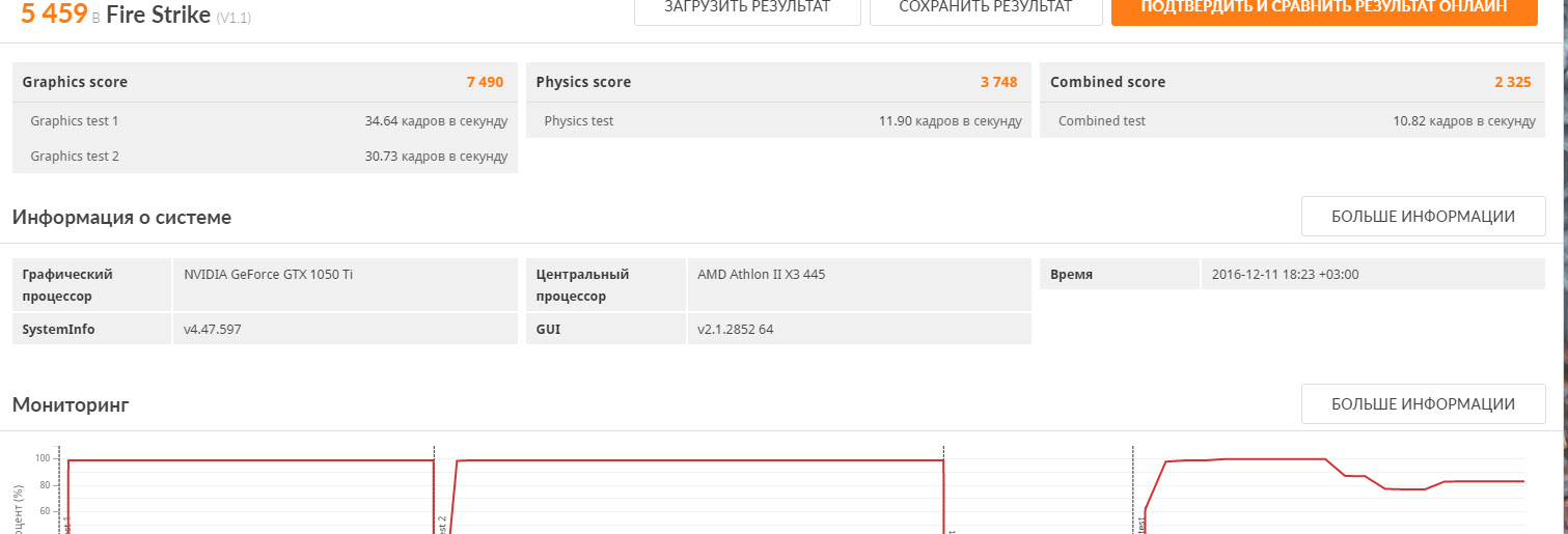 UPD. Поставил 3DMark. Куча разных тестов, какой-то вот запустил. Разогрел ВК всего до 47С. Её разгонять и разгонять.