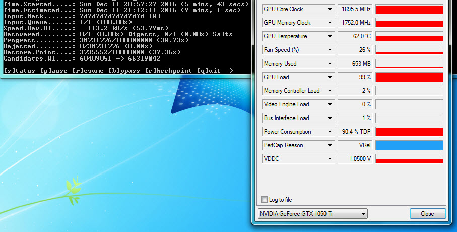 Попробовал лучший страпон для видеокарт - hashCat. Цифровой восьмизнак WPA2 берётся за 15 минут)) 62С при комнатной 18С, 26% вентилятора. Т.е. в играх будет до 60С. Причём уровень TDP намекает, насколько погонется эта видеокарта.