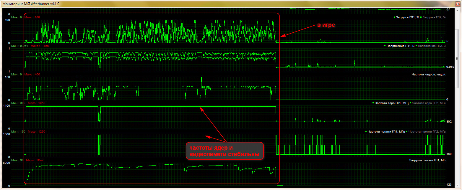 Какое же это "норм"?! Если в играх вторая 300 и 150 (ядро и память, как я понимаю) - то это означает, что в этих играх кросс не работает. Это разве нормально???