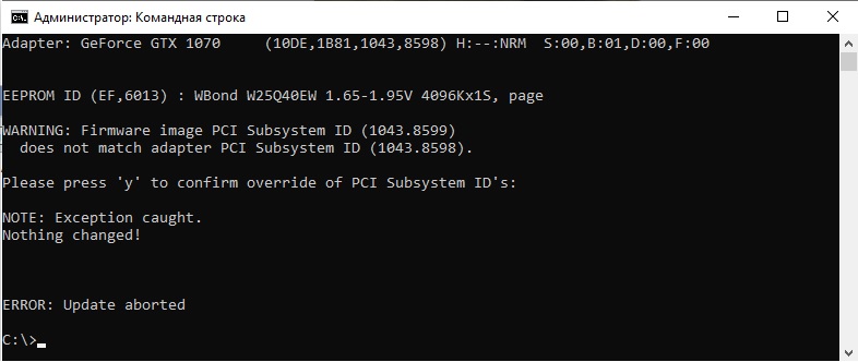 не получается прошить обычный стрикс 1070 в стрикс ос, nvflash пишет вот это. Лок снимал P.S разобрался, на паскалях оказывается не прошьешся.. только на палитах, потому что у них у всех карт один и тот же ID
