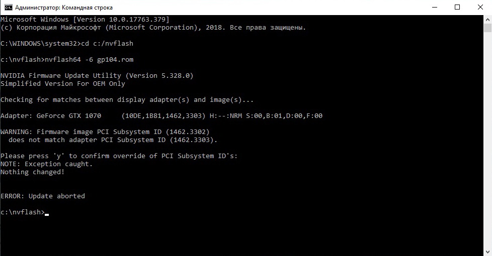 аналогичная проблема, как и постом выше. имею GTX1070 Gaming X прошитую в Gaming Z. хочу обратно вернуть заводскую прошивку. несколько лет назад сам лично её прошивал, а сейчас ни в какую не хочет, перепробовал с десяток версий nvflash, в том числе с байпассом. защиту снимал, но результат один -