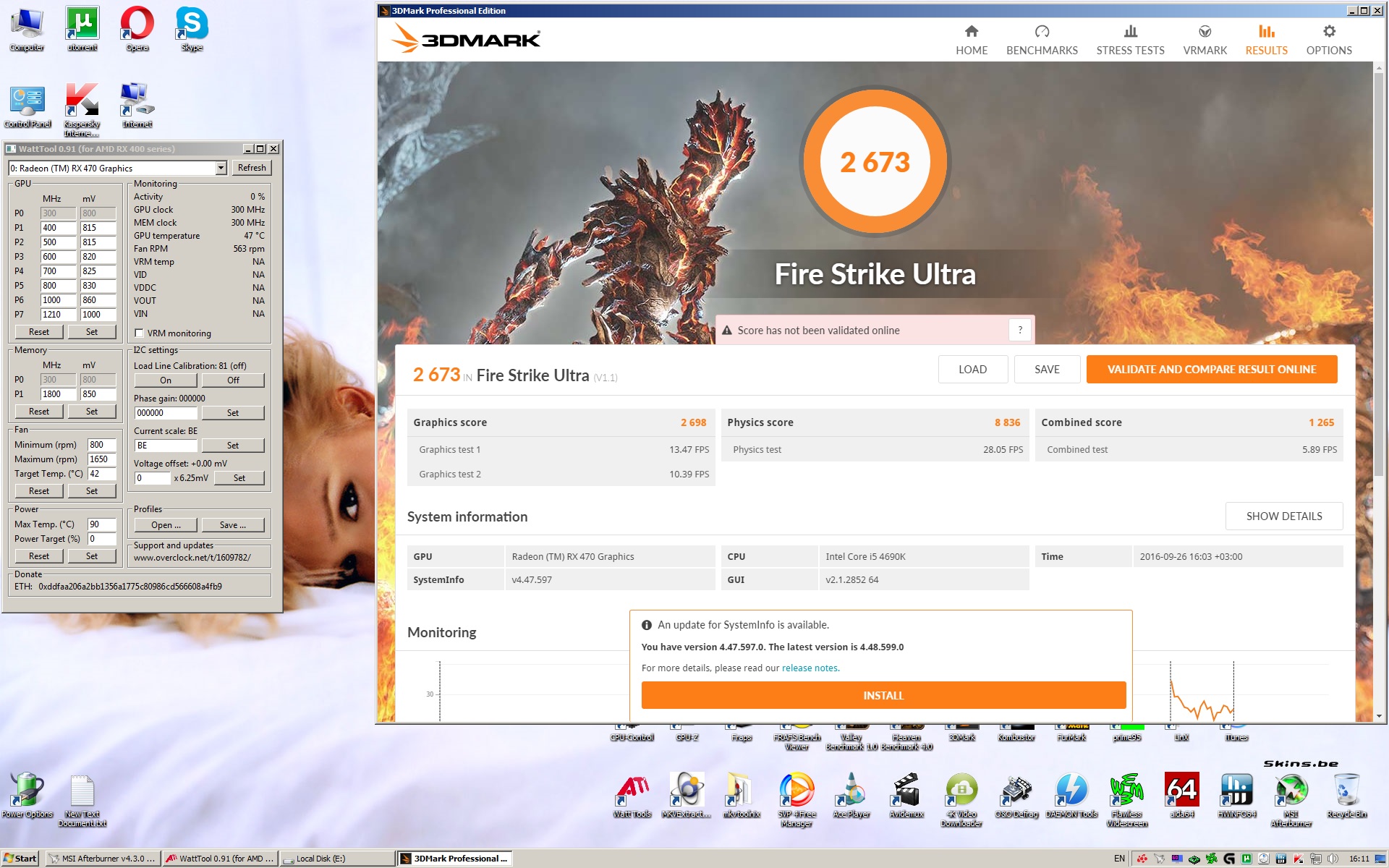 Еще одна малюсенькая просьба - запустите hwinfo 5.37 (последняя бета) во время теста 3dmark fire strike ultra и напишите, какое максимальное напряжение на чипе в ней будет промониторено. У меня при напряжении на памяти 900 мВ, а на чипе 988 мВ напряжение при мониторинге подскакивает выше 1100 мВ. Интересует именно максимальное в hwinfo.