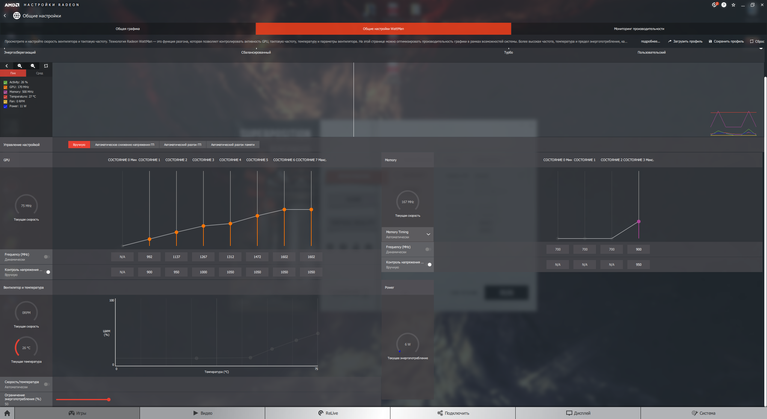 10 прогонов - мало? Вышел полностью стабильный разгон, по версии 3дмарка, однако в играх где нагрузка прыгает вылеты случались. В среднем частота была 1555мгц и напруга чуть чуть выше 0.9В