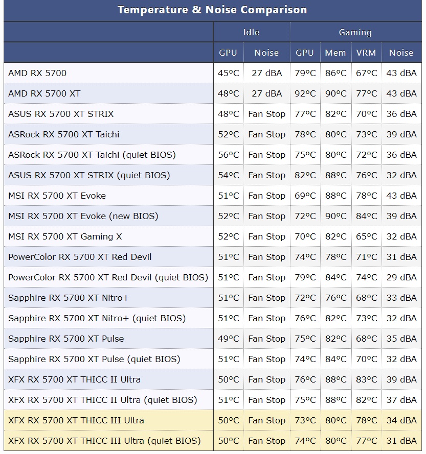 Не рекомендуется к приобретению: Также можно присмотреться к Gigabyte RX 5700 XT Gaming OC, но следует учесть, что у значительной части владельцев этой карты в этой ветке возникли с ней проблемы, в осносновном это необъяснимые черные экраны. По этой причине карта теперь не рекомендуется к приобретению. Поэтому на свой страх и риск. STRIX за цену и проблемные вентиляторы и СО (Asus Strix Fix, Another Defective Radeon RX 5700 XT - Hardware Unboxed); Evoke (первая и вторая ревизия) за мизерные термопрокладки (в новой ревизии карты могли исправить, брать с осторожностью, если смогли убедиться, что карта новой ревизии); THICС II за проблемы с охлаждением всех занчимых элементов карты и работу кривой вентилиторов (кривую можно немного исправить обновлением vBIOS) MSI Mech (первая ревизия) слабая СО, не братьни в коем случае. TUF (первая ревизия) за недоработки СО.