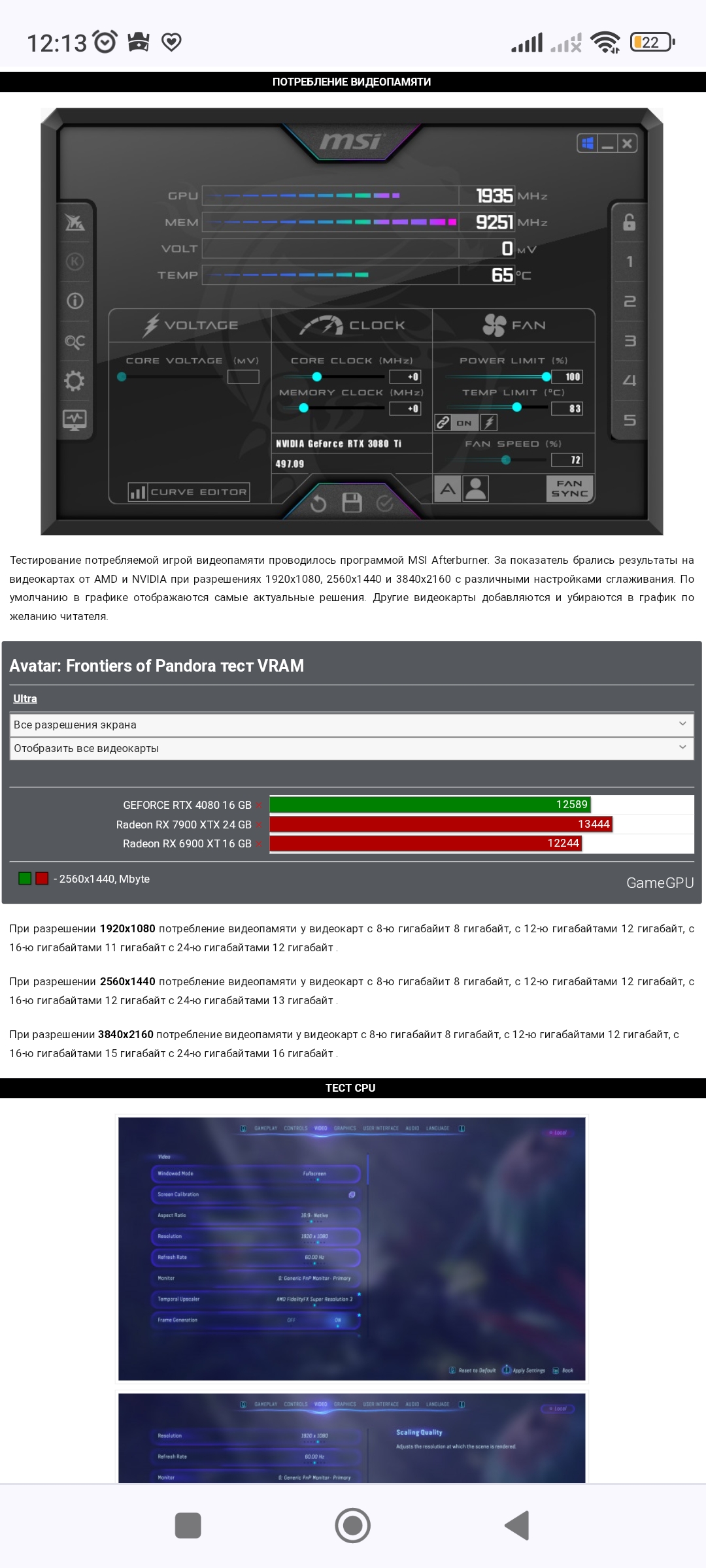 а тесты с геймгпу мне не интересно, они скорее всего в эксель тестят как и феникс, есть реальные факты потребления врам в новых играх и они для владельцев 12 гб не утешительные, но вы можете до конца не принимать данный факт, так как вы находитесь на стадии отрицания в данный момент.