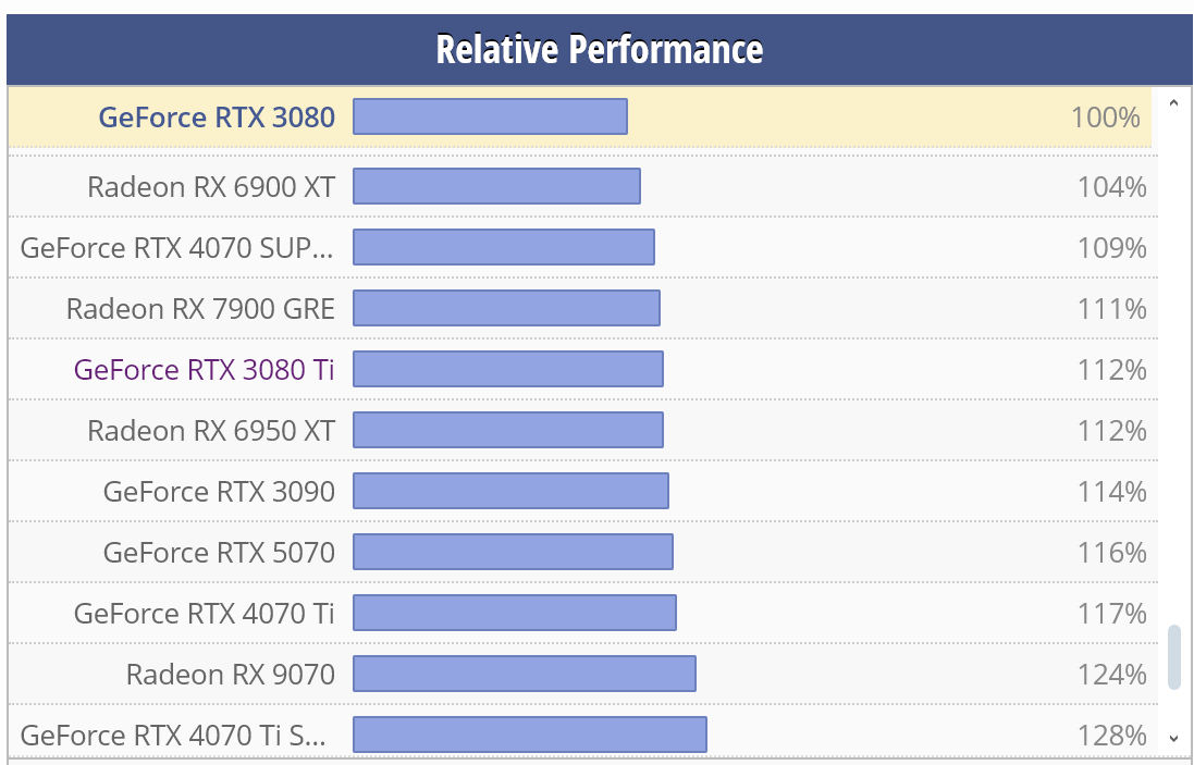А так я прямо чувствую, как "Куртка" меня развела на 16гб vram, продав тупо ту же 3080, но слегка разогнанную по частоте гпу 1800vs2800... А так ROP/TMU/Cuda там одинаковое количество, как и fps в играх с около-нулевым приростом.