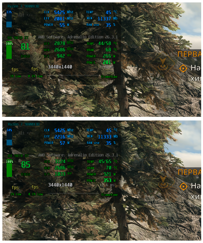 Баг в pl для 9070nonxt заключается в том, что относительно стока(220вт) при увеличении pl снижается производительность и рабочие частоты, при уменьшении наоборот увеличивается(если просто то на -10pl будет fps выше чем в стоке или при +10pl, но только в играх, в steel nomad адекватная реакция на изменение pl). Касается это не всех вендоров. Видел упоминания Sapphire pulse, Asrock challenger, Powercolor Reaper. У тебя как раз и другая карта и все работает как и должно, я совсем про другое писал.