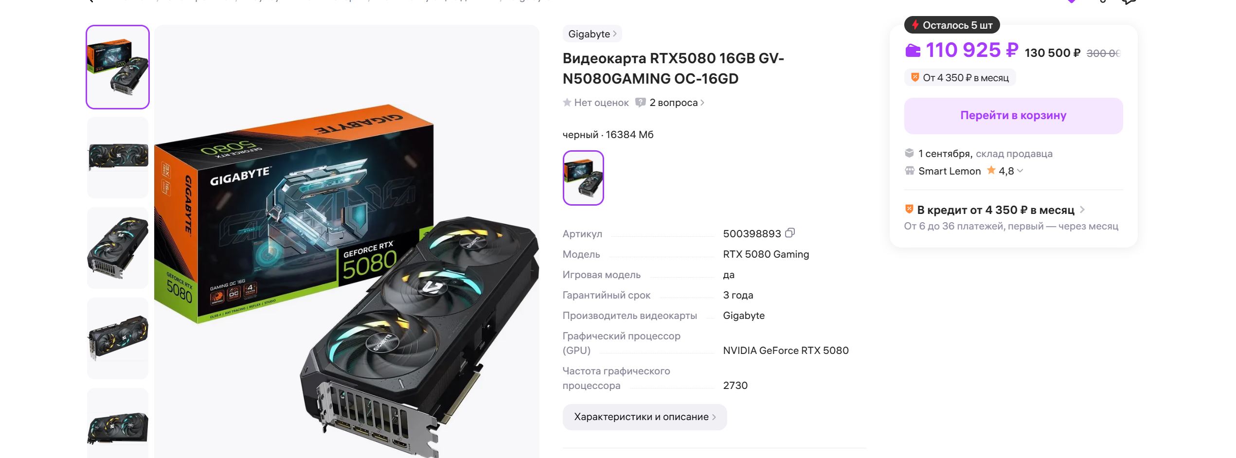 Думал между 5070ти и 5080, в последней пока смысла не увидел. Т.к. доплатить надо по сути еще почти полцены (минимальный прайс сейчас 71/102 за палиты), но соответствующего прироста, понятно, там и близко нет.