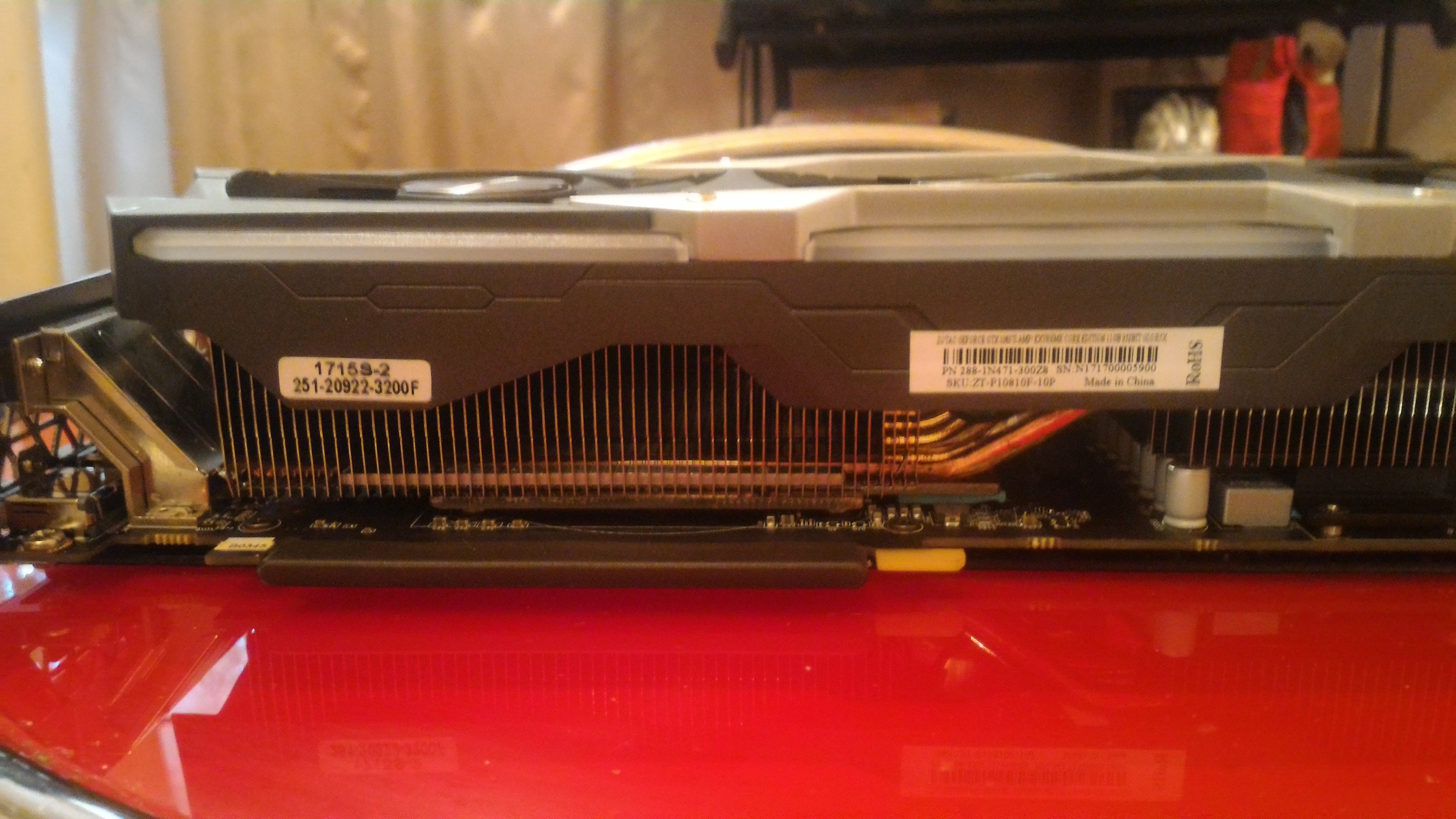 получил посылку-вот фотки-скоро видосики. Она реально тяжелая, может быть я так думаю потому что ни когда таких карт не было с таким большим кулером длиной. Я думаю она будет провисать-надо будет что-то придумать. Чую сегодня я нормально не поиграю-но и насиловать карту я не собираюсь, уж извините. Радует, то что термопрокладки толстые и прямо контактируют что с памятью что с врм-в отличии от gtx 1080 FTW