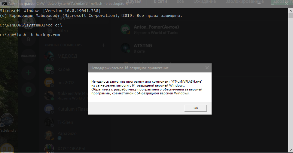 винда потому что 64 битная 10ка. И nvflash не поддерживает 64 бита.