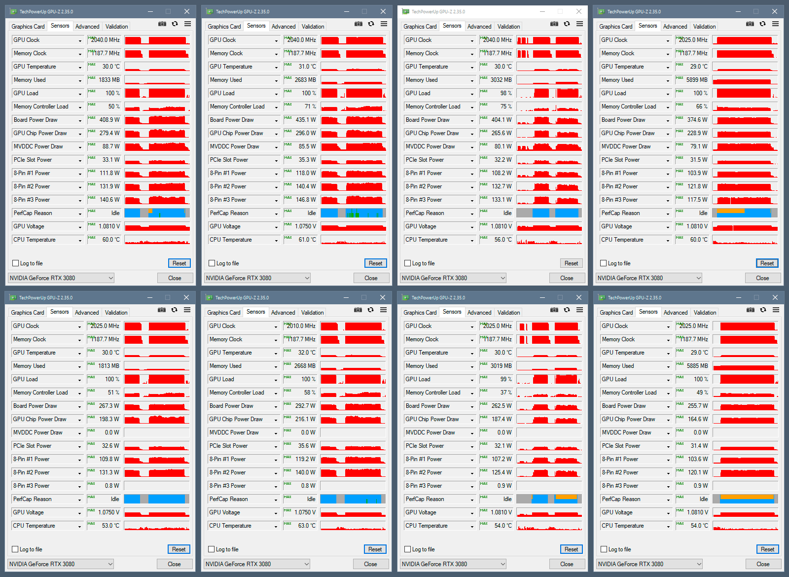 16.09.2020 - создание темы, добавление ссылок на обзоры RTX3080 17.09.2020 - обзоры Palit RTX 3080 GamigPro OC, MSI RTX 3080 Gaming X Trio, Asus TUF RTX 3080, Zotac RTX 3080 Trinity, информация по блокам питания 19.09.2020 - обзор Gigabyte RTX 3080 Eagle OC 10G, Nvidia RTX 3090 22.09.2020 - косметические правки, добавление ссылок 23.09.2020 - добавление базы данных с сайта overclock (спасибо coka) 24.09.2020 - добавление обзоров 3090 26.09.2020 - полезная информация по видеокартам Аmpere (алгоритм работы вентиляторов, причины проблемы с boost), и другое 30.09.2020 - дополнение к полезной информации, добавление обзоров RTX 3090, правки в оформлении 02.10.2020 - начато заполнение F.A.Q. 06.10.2020 - начат сбор статистики по видеокартам 08.10.2020 - добавлена информация по видеокартам Palit RTX 3080/3090 серии GamingPro и GameRock от Palit Support 09.10.2020 - в F.A.Q. добавлена информация по видеокартам Palit, поддержке VRR и прошивке BIOS. Косметические правки 10.10.2020 - добавлены ссылки на обзор архитектуры Ampere. В F.A.Q. добавлена информация по GPU Boost и лимитам. 29.10.2020 - добавлены обзоры на RTX 3070 от разных вендоров 31.10.2020 - информация по драйверам 04.10.2020 - в F.A.Q. добавлено пособие по работе с кривой MSI Afteburner 06.11.2020 - изменения в F.A.Q. по отличию видеокарт Palit 18.11.2020 - добавлена информация в F.A.Q. по BIOS от Palit и EVGA 20.11.2020 - дополнен F.A.Q. (достаточность RTX3000 для FHD/QHD/4K мониторов) 25.12.2020 - дополнена полезная информацию по картам 28.01.2021 - пример настройки курвы 03.02.2021 - обзор EVGA 3080 с андервольтингом 04.03.2021 - добавлена информация по замене термопрокладок на RTX 3080 31.03.2021 - добавлен BIOS с поддержкой Resizable BAR от Palit 05.08.2021 - добавлены обзоры 3080, 3080Ti, 3090 от occlub 12.02.2022 - добавлена информация по термопрокладкам 21.02.2032 - добавлена информация по термопрокладкам от T[]RK