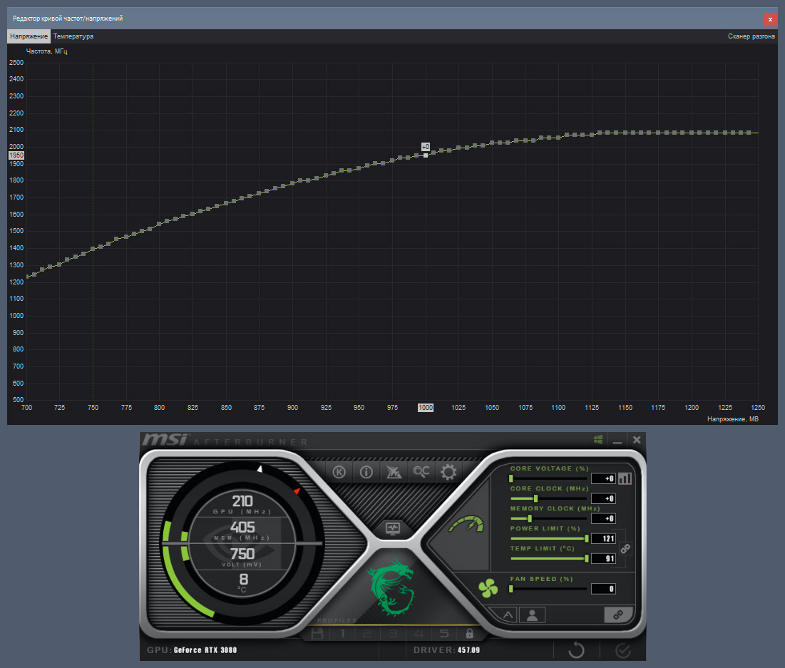 dear БИОС шил такой же (EVGA 3080 FTW3 Ultra 94.02.26.48.88 от 2020.10.17). Кривая построена автоматически исходя из: все в дефолте кроме PL, установленного на максимум: