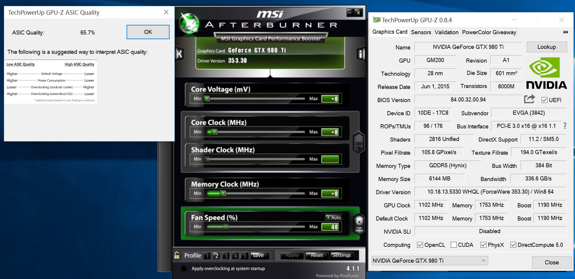 Запустил наконец то свой EVGA 980Ti SC+ ACX2.0+ ASIC 65.7 Подскажите, а чего в AB не показывает Power Limit? Стоит превью win 10/ дрова видны на скрине.