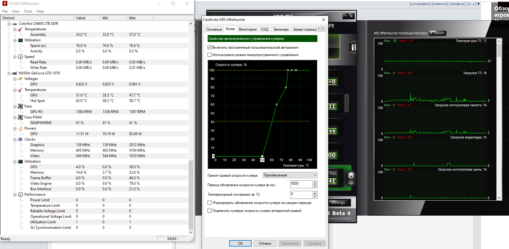 моя видяха почему-то не останавливается, как бы я в MSI Afterburner не строил кривую, минимум который возможен это 41% оборотов перепробовал все возможные комбинации вкл/выкл всех пунктов в настройках кривой =( GeForce® GTX 1070 G1 ROCK 8G GV-N1070G1 ROCK-8GD