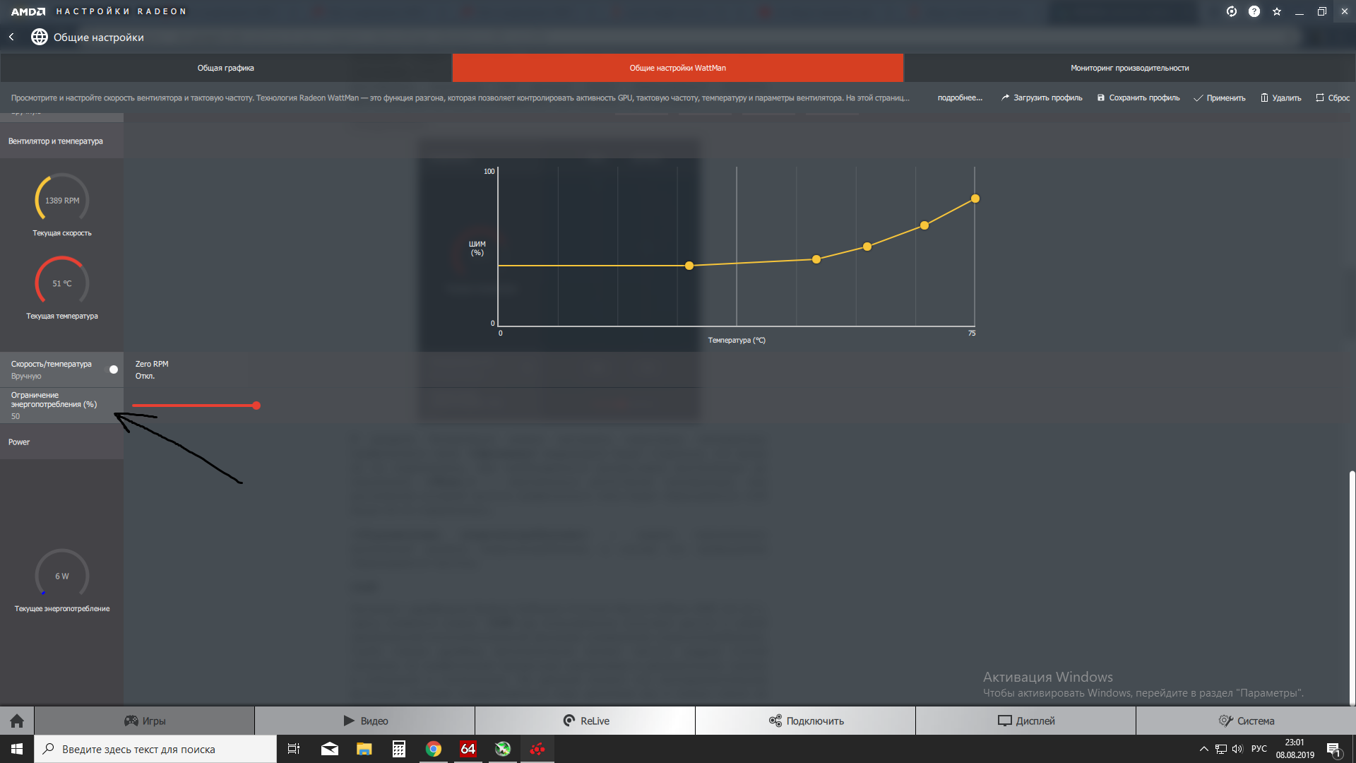 Fitchew, после тестов в сбалансированном режиме, около часа в Path of Exile с загрузкой карты на 100%, выставил вот такой профиль в ватмане, побегал ещё минут 10-15, проблем не было. Память карты не разгонял. Где кстати посмотреть какой у неё вендор? Добился вольтажом стабильности частот на чипе карты, частата в нагрузке гуляет (смотрел на графиках хвинфо) в пределах 1415~1550 Mhz. Хот спот 77 градусов, чип 63, память 67. Можешь что нибудь посоветовать? Вот профиль -