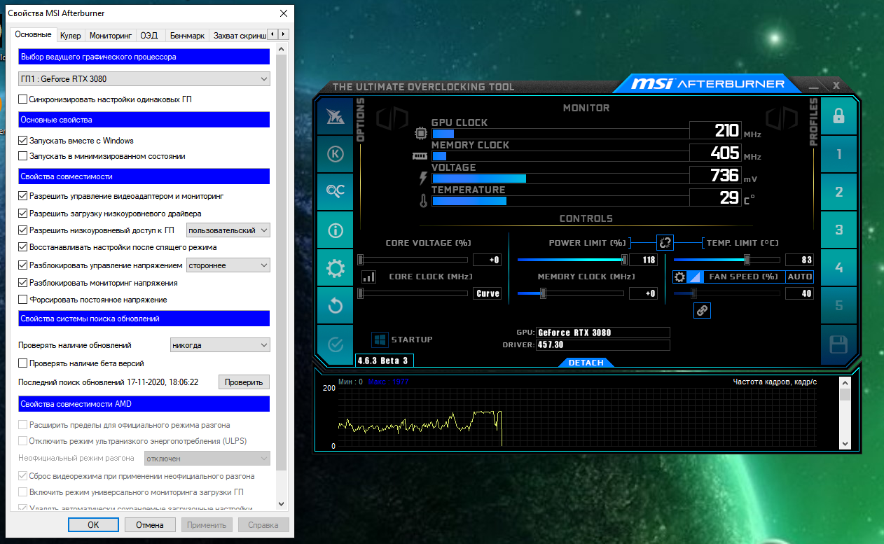 16.09.2020 - создание темы, добавление ссылок на обзоры RTX3080 17.09.2020 - обзоры Palit RTX 3080 GamigPro OC, MSI RTX 3080 Gaming X Trio, Asus TUF RTX 3080, Zotac RTX 3080 Trinity, информация по блокам питания 19.09.2020 - обзор Gigabyte RTX 3080 Eagle OC 10G, Nvidia RTX 3090 22.09.2020 - косметические правки, добавление ссылок 23.09.2020 - добавление базы данных с сайта overclock (спасибо coka) 24.09.2020 - добавление обзоров 3090 26.09.2020 - полезная информация по видеокартам Аmpere (алгоритм работы вентиляторов, причины проблемы с boost), и другое 30.09.2020 - дополнение к полезной информации, добавление обзоров RTX 3090, правки в оформлении 02.10.2020 - начато заполнение F.A.Q. 06.10.2020 - начат сбор статистики по видеокартам 08.10.2020 - добавлена информация по видеокартам Palit RTX 3080/3090 серии GamingPro и GameRock от Palit Support 09.10.2020 - в F.A.Q. добавлена информация по видеокартам Palit, поддержке VRR и прошивке BIOS. Косметические правки 10.10.2020 - добавлены ссылки на обзор архитектуры Ampere. В F.A.Q. добавлена информация по GPU Boost и лимитам. 29.10.2020 - добавлены обзоры на RTX 3070 от разных вендоров 31.10.2020 - информация по драйверам 04.10.2020 - в F.A.Q. добавлено пособие по работе с кривой MSI Afteburner 06.11.2020 - изменения в F.A.Q. по отличию видеокарт Palit 18.11.2020 - добавлена информация в F.A.Q. по BIOS от Palit и EVGA 20.11.2020 - дополнен F.A.Q. (достаточность RTX3000 для FHD/QHD/4K мониторов) 25.12.2020 - дополнена полезная информацию по картам 28.01.2021 - пример настройки курвы 03.02.2021 - обзор EVGA 3080 с андервольтингом 04.03.2021 - добавлена информация по замене термопрокладок на RTX 3080 31.03.2021 - добавлен BIOS с поддержкой Resizable BAR от Palit 05.08.2021 - добавлены обзоры 3080, 3080Ti, 3090 от occlub 12.02.2022 - добавлена информация по термопрокладкам 21.02.2032 - добавлена информация по термопрокладкам от T[]RK