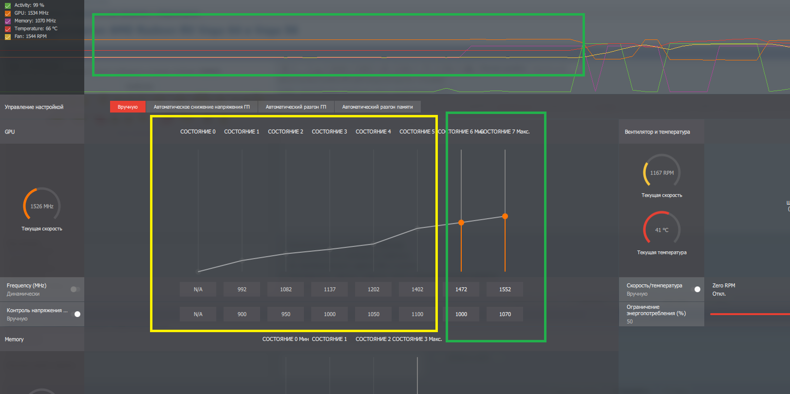 Саид Так и есть. Карта крайне глючная (у меня такая же). Сдавать. Если не получится, подбирать напряжения и частоты опытным путем. Я положил доп вентиль на бэкплейт, отключил Р0-Р2 на памяти + андервольт + PL 50%. Стало терпимее.