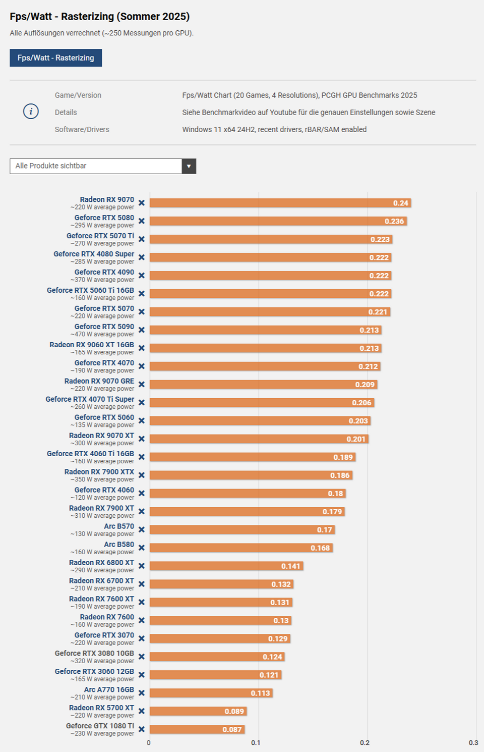 Энергоэффективность на FPS на 1 Вт.