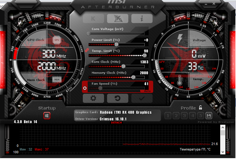 Добрый вечер, поставил вчера msi 480 gaming X, если я правильно смотрю в Afterburner то в простое карта 33 градуса?) Или через какую прогу лучше мерить?)
