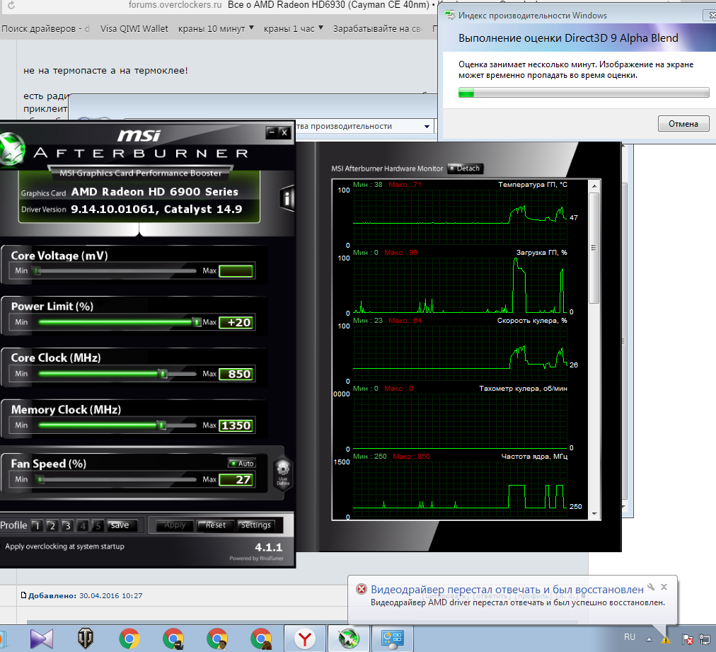 Поставил все по минему в АБ отыграл боев 5-6 в WoT(на 6 или 7 шторка) Оценка Виндовс так и не проходит шторка вылетает на Декодировании мультимедиа...Я уже в печали ....У меня кстати нету пластины на памяти есть только радик на мосфетах...