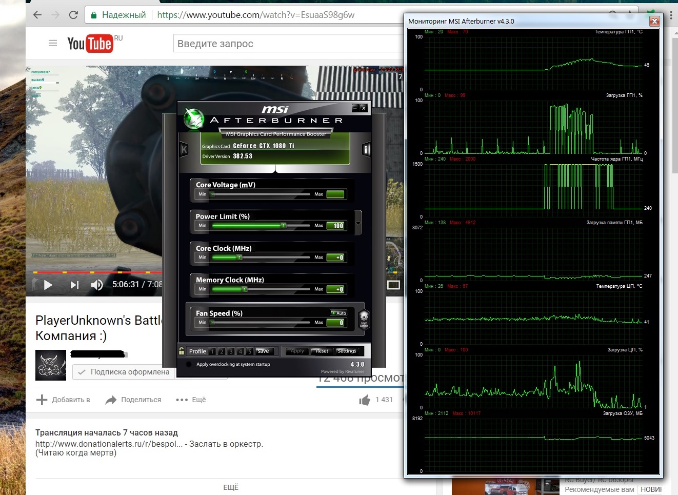 Доброго времени суток. Для статистики, стал обладателем Gigabyte Aorus 1080 ti(не Extream). Накинул +100 на ядро и +500 на память PL 100%, стабильно проходит все тесты, в играх так же не встречал проблем. По ядру с данным разгоном держит стабильные 2000 по ядру и 12004 по памяти. Дросселя не стрекочут и не гудят(БП-Corsair HX850i), вентиляторы тихие, до 55% их не слышно от слова совсем в открытом корпусе, на 65(1870 RPM) слышен поток воздуха, ни каких раздражающих звуков нет. Это все на дистанции полу метра от открытого корпуса. С выше описанной проблемой с БСОДОМ при работе в браузере или просмотре видео не сталкивался. По температурам, при 65% выставленных в ручном режиме ядро не прогревается выше 68с при разрешение 1080р и 4к. На автооборотах держит температуру в пределе 74-75, но карту в такой работе не слышно совсем. По разгону памяти, накидывая +600 ловлю вылет драйвера, остановился на +500(12004). Ядро на +150 крашит драйвер без поднятия PL, с поднятием не знаю, не пробовал. На +100 по ядру все работает стабильно 24/7, пока что не искал максимальный разгон для моего экземпляра, но это где то от +101 до 149 по ядру и от +500 до 599 по памяти при PL 100%(300 ват).
