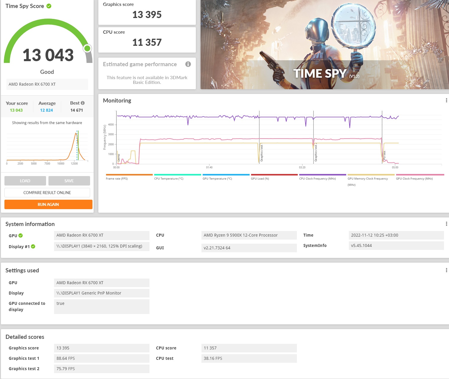 rx 6700 xt, в андервольте и на частоте 2650 мгц, набирает 14к очков в TS. Вполне конкурент 3070. Можете в теме соответсвующей поискать результаты или поспрашивать.