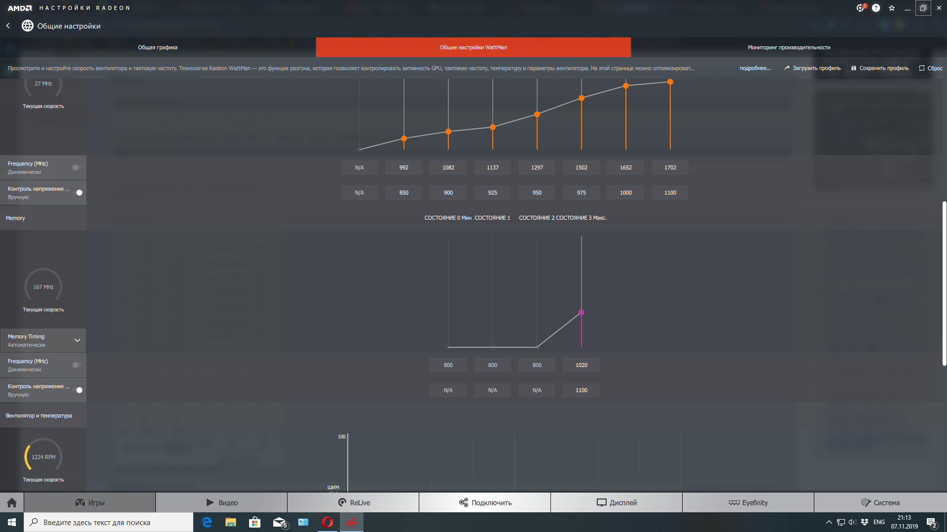 Приветствую, недавно приобрел Vega 64 nitro+, естественно первым делом полез в wattman и даунвольтнул её, и тут вылезла одна проблема. Смотрел разгон памяти в инете и почти у всех спокойно память берет 1100 МГц, у меня же при стоковом напряжении 1100мв максимум что получилось - 1020 МГц если поднимаю выше - не проходит тест стабильности в 3d Mark. Это норма?) Или может я что то не так делаю)) Прошу помощи в данном вопросе)