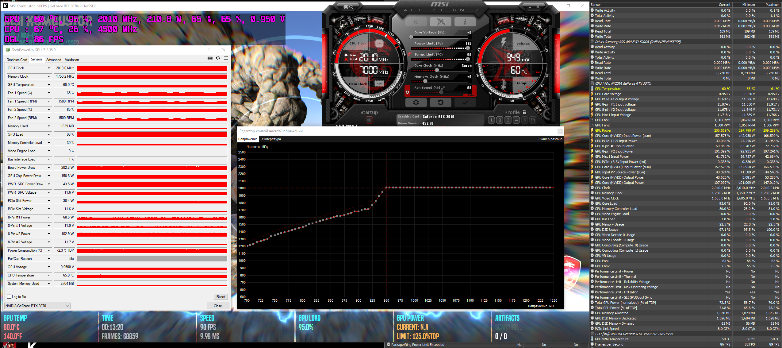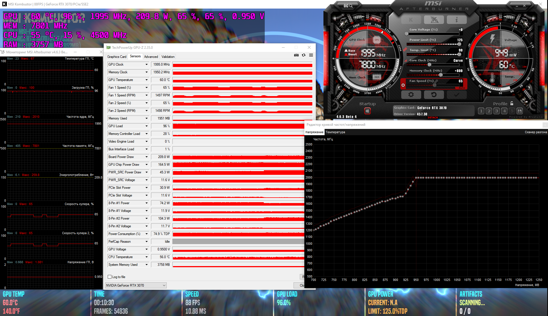 Это условно стандартная настройка для 3070 Все хорошо Но когда подкинешь память скорее всего появятся «рисочки» всплесков в тяжёлых тестах типа таймспай экстрим Так что я скинул просто ниже, до 1980мгц +900 по памяти для gddr6 больше смысла имеют, чем 30мгц на чипе