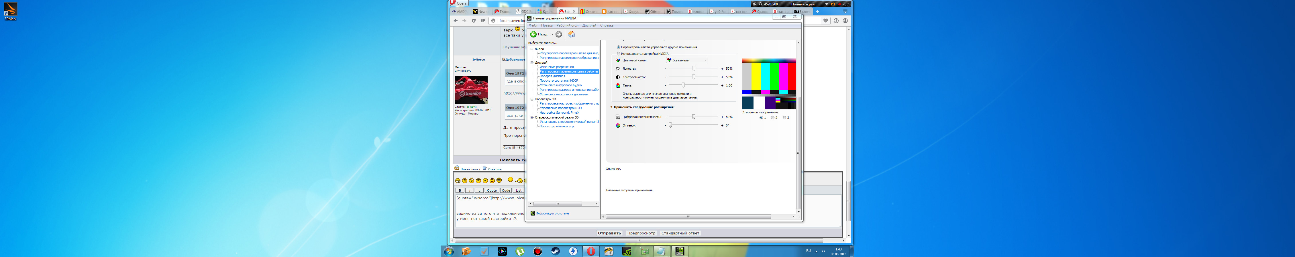 1. В Каталисте ползунок "Контраст" регулирует яркость лед-лампы монитора при подключении через HDMI. 2. Цвета на GeForce лучше настраивать монитором.