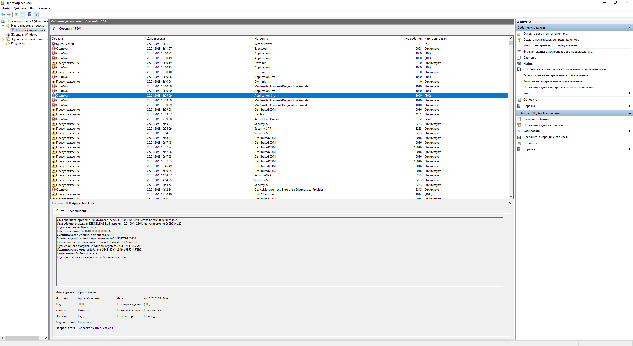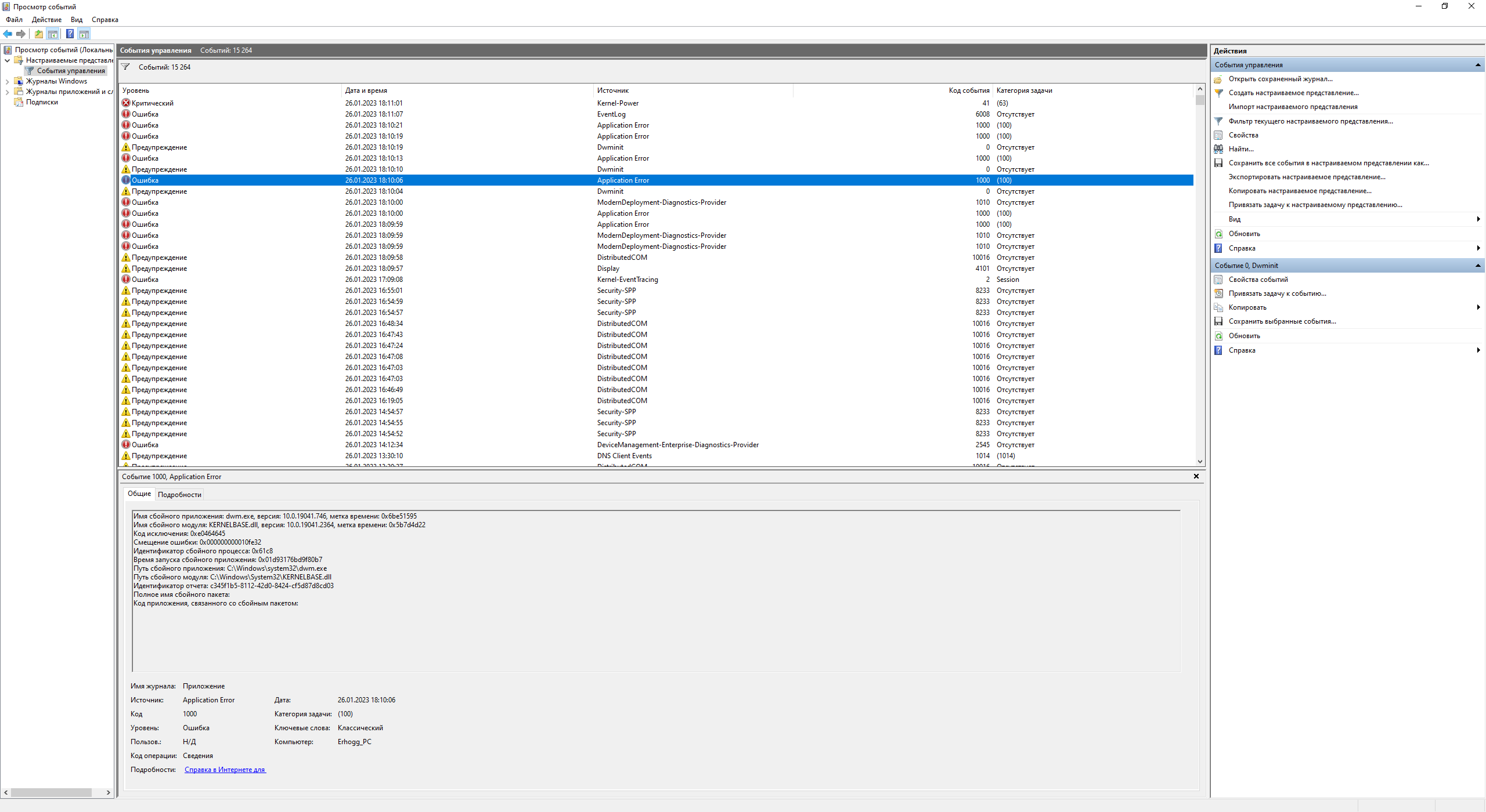 Смотрел, там вылет драйвера и еще куча всего, чего, кстати, обычно не было при вылетах драйвера. Заскринил. Такое ощущение, что при этом почти все приложения посыпались, которые были запущены...