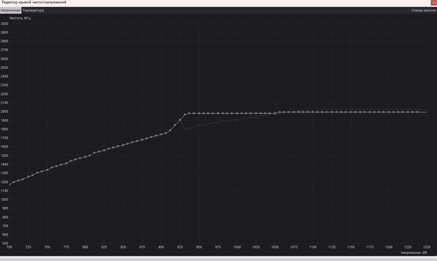 Видеокарта Asus rog geforce 3070 ti Всем привет. подскажите пожалуйста по программе MSI Affterburner. выставил напряжение 931 мв на 1935 частоте. обрезал напряжение. график ровный. после перезапуска Windows или выключаю и включаю компьютер. график сбивается и не ровный. Галочка "разрешить управление напряжением" Нажимал на замочек. сохранял профиль, ещё раз нажимал на замочик. всё равно график напряжения не ровный и сбивается.