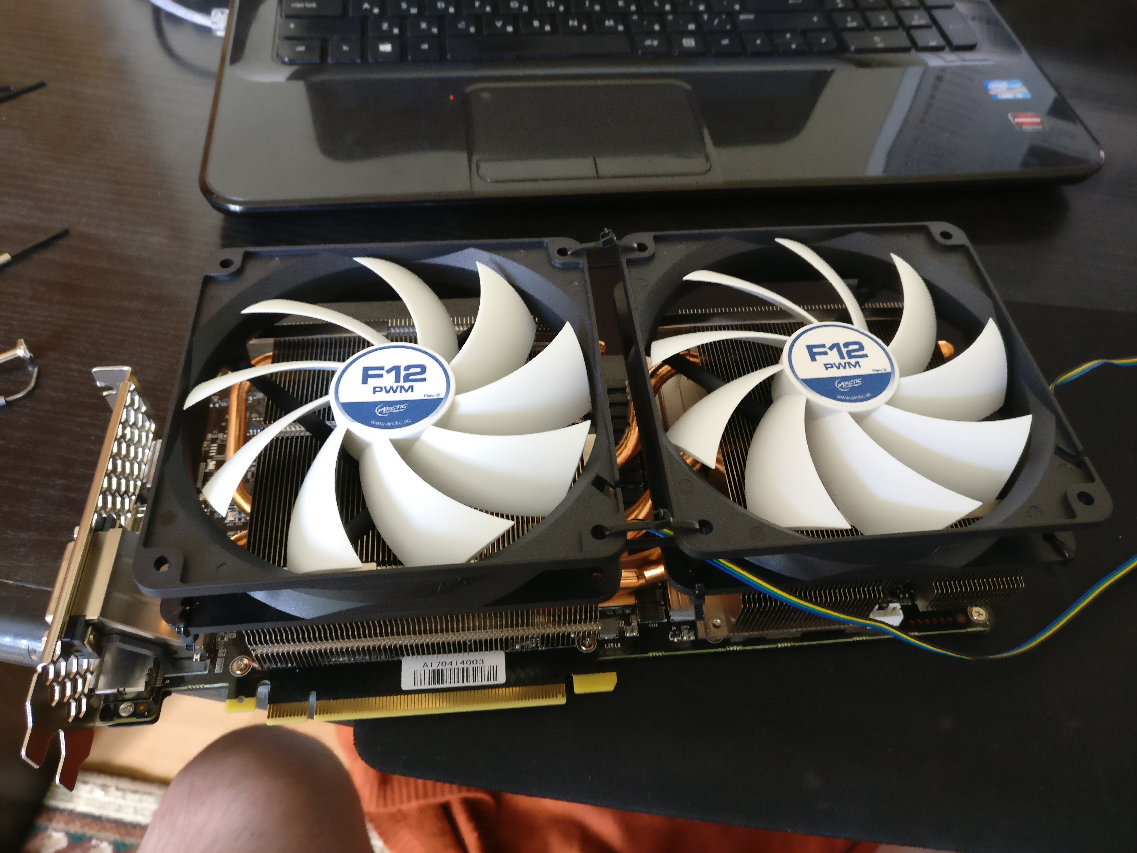 Впечатления вертушки обычные дешевые Arctic F12, 1350 об/мин, уровень шума сопоставим со штатными вентиляторами на 58-60% оборотов (около 1500об/мин). Температура в среднем упала на 8 градусов.