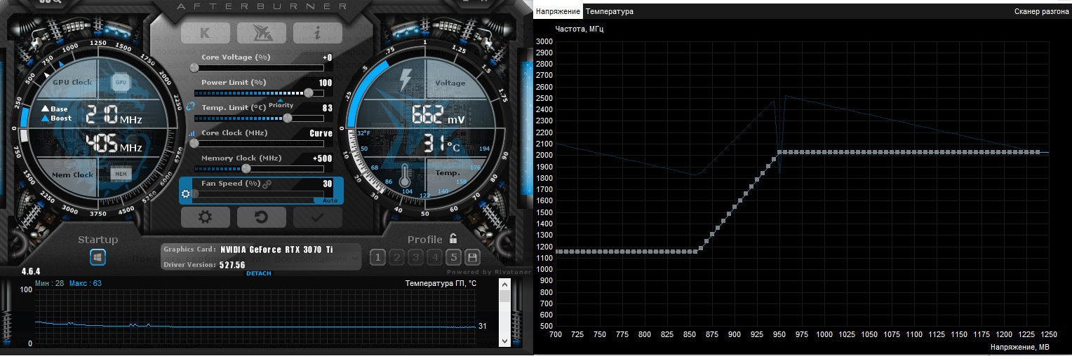 Здраствуйте! Есть вопрос по поводу андервольта RTX 3070Ti Palit Gaming Rock, в 09.2022 я переустановил W10 и решил снова сделать андервольт своей видеокарты раньше она работала на 0.950v при 1950mhz память я не стал разгонять а куллеры были на авто, все работало стабильно но выше не мог сразу вылетал был, но после переустановки я решил снова попробовать и удивился что видеокарта смогла взять даже 2025mhz и + 500mhz на память при 0.950v, так же сделал все тесты играл больше четырех дней и все работает стабильно и без вылетов или артефактов, так что я даже не знаю проблема в W10 или драйверах видеокарты или еще чем. Кхм так вот стоит ли понижать вольтаж и оставлять разгон по памяти или пробовать только разгон по ГПУ с понижением вольтажа?