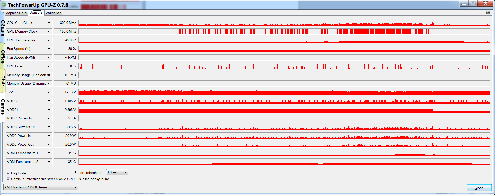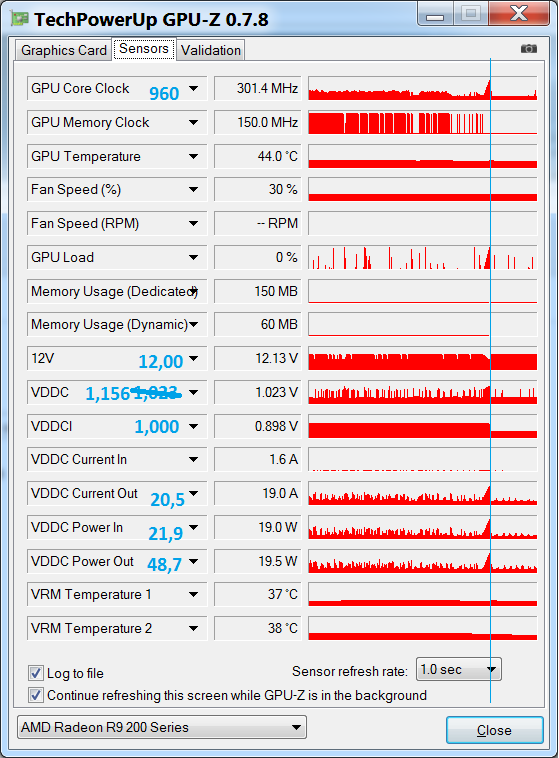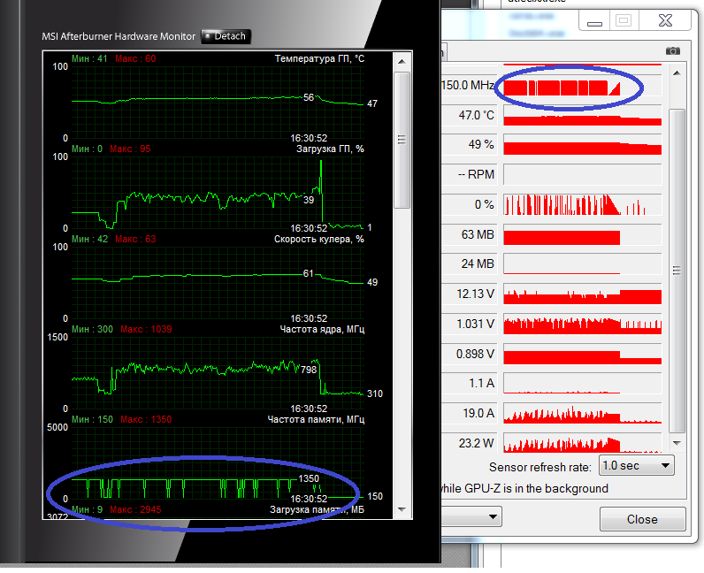 Обратите внимание - частота памяти в 2D упала до 150 МГц. Сейчас смотрю по мониторингу она на ней и держится, больше не скачет. Все, в этом сеансе работы больше вылета не будет, я уже такое наблюдал.