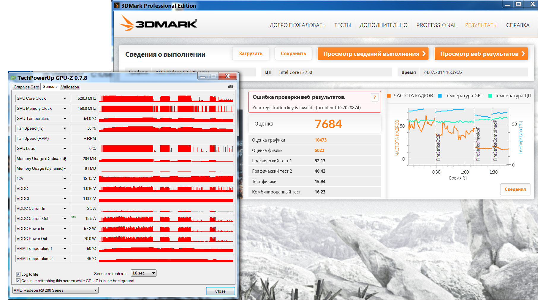 3Dmark (частоты скачут только в перерывах между тестами)