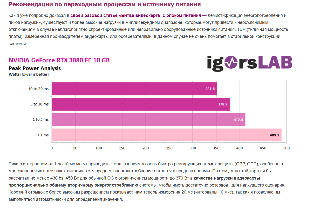 WiZ_WT Для многих 3060ти производитель рекомендует БП га 600 вт, очень маловероятно, что производитель TUF Gaming RTX 3060 Ti OC Edition 8G GDDR6X смог что то сделать с картой, что бы она смогла потреблять вместо 200-230 ватт еще плюсом 150.