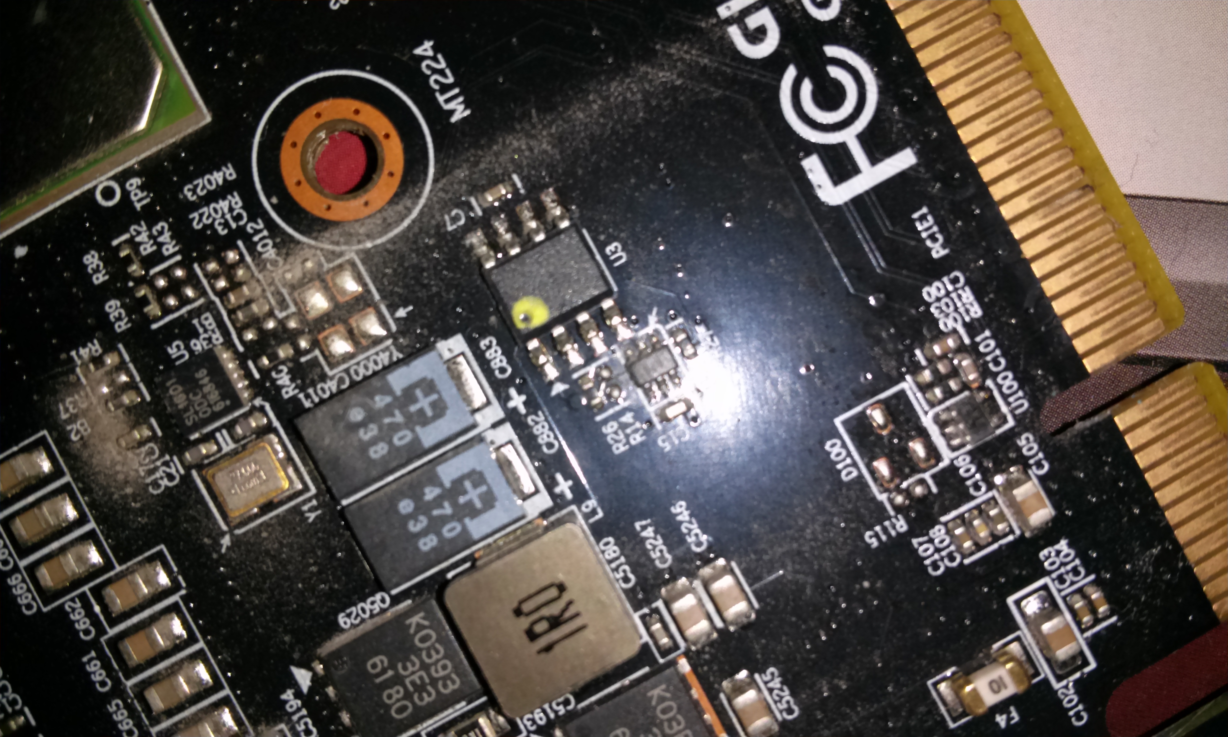 Разобрал карту и обнаружил дырку в микросхеме Pm25LD010. Подскажите, что это за чип и возможно его заменить? Или уже всё, даже замена не поможет и проблема не в нем? Добавлено: Похоже с чипом вс' нормально, с другой стороны такой же. Это просто краска...