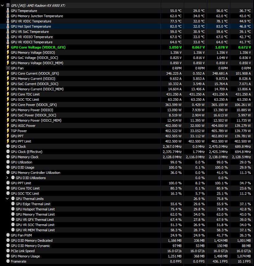 Всем привет, есть DCC стоит в слоте 5.25 с расширительным бачком, качает в толстый 40мм 480х120, он в свою очередь охлаждается 4х120х1100((rpm), радиатор охлаждает одну 6900xt zero от xfx с заводской водой, дополнительного разгона нет 2550mhz при 1.2v, греется все адово. В стресс тесте после 30 минут, ГПУ 64, хот-спот 81. Не пойму куда копать, разбирать карту, менять пасту и т.д, она с пломбами на гарантии..