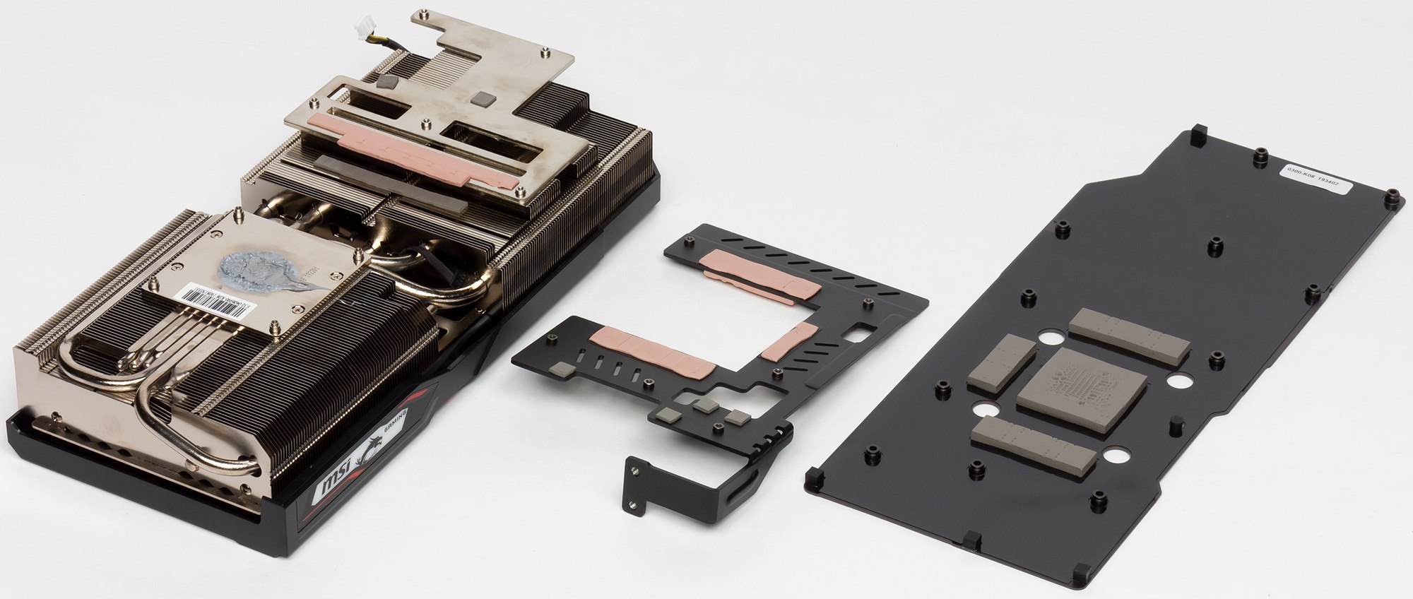 *В качестве замены воздушного охлаждения для рефа или другой карты среднего ценового диапазона подойдёт Raijintek Morpheus II (и его вариации в разных цветах и комплектациях, сами радиаторы между собой отличаются только размером медной патки и никелированием, остальные размеры идентичны) (пример от IDDQD, пример от Apocalypse777, пример от Valeratal), но для него необходимо отдельно приобретать вентиляторы с хорошим статическим давлением, чтобы продуть толщину радиатора и достать до памяти. Также учтите, что кулер в сборе с картой и вентиляторами 25мм занимает больше трёх слотов PCI-E. При этом вам может потребоваться один или несколько переходников для подключения вентиляторов к разъему на видеокарте. В случае с нерефом разъем подключения может отличаться от такого на рефе количеством пинов, но в большинстве случаев это разъем стандарта Molex Picoblade 1.25 / Micro JST на 4 пина. Примеры далее для подключения вентиляторов к рефу:такой или такой. И еще вот такой или такой. Либо поищите на али сразу такого формата. Вариант доработки СО для охлаждения чипов памяти и пример от Valeratal. Имейте ввиду, что размер пластины, высоту чипов памяти и гпу необходимо измерять на своей карте, так как в видео может быть карта отличная от вашей.