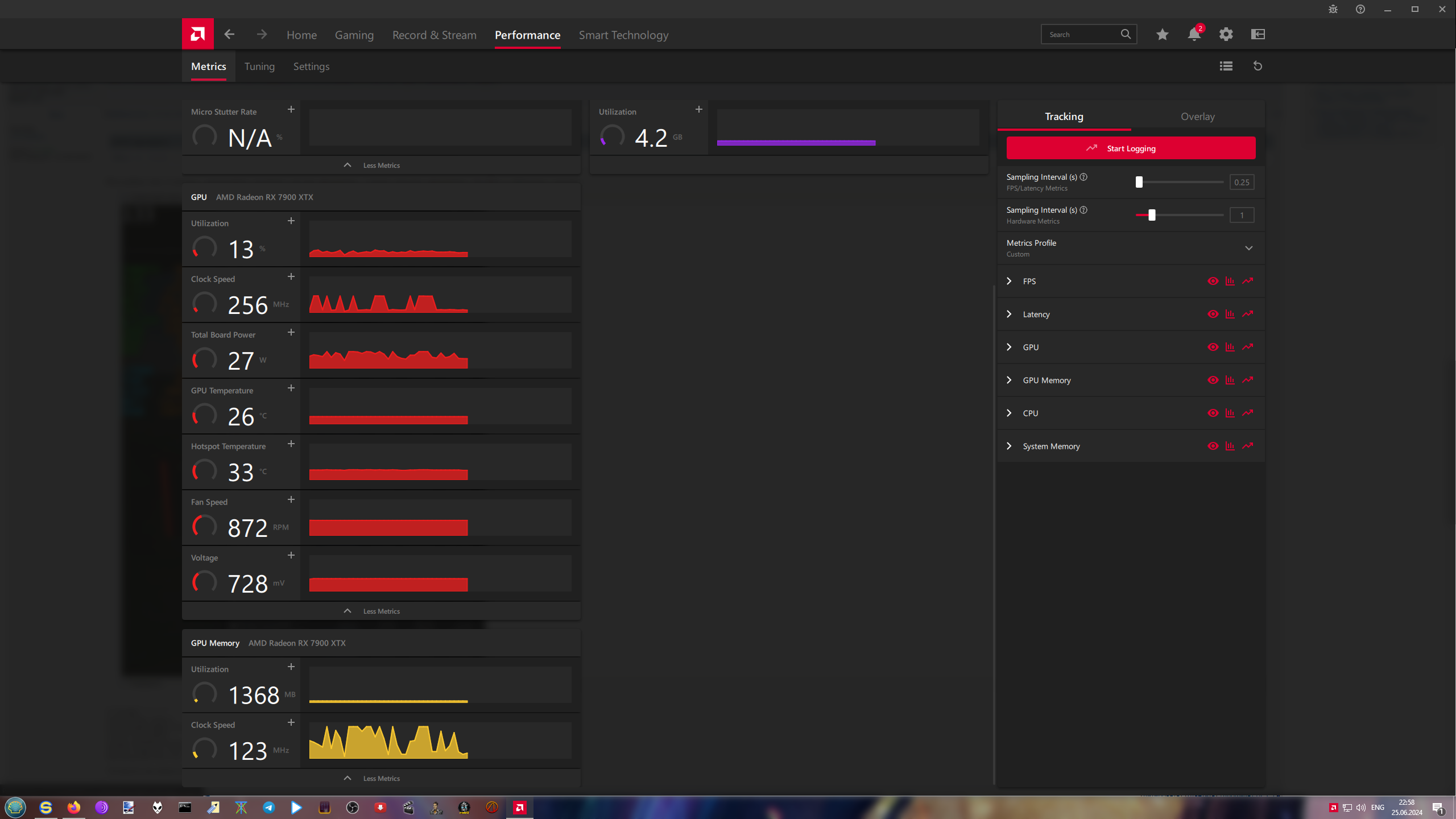 PS в afterburner при следующих настройках: Память 2550. Ядро залочено на 2450 при PL 90%, напряжение 1040мв карта потребляет еще меньше 200-220W. Обороты на 1100 - 1200 практически всегда. С afterburner 7800xt работает стабильнее у многих. Советую попробовать!