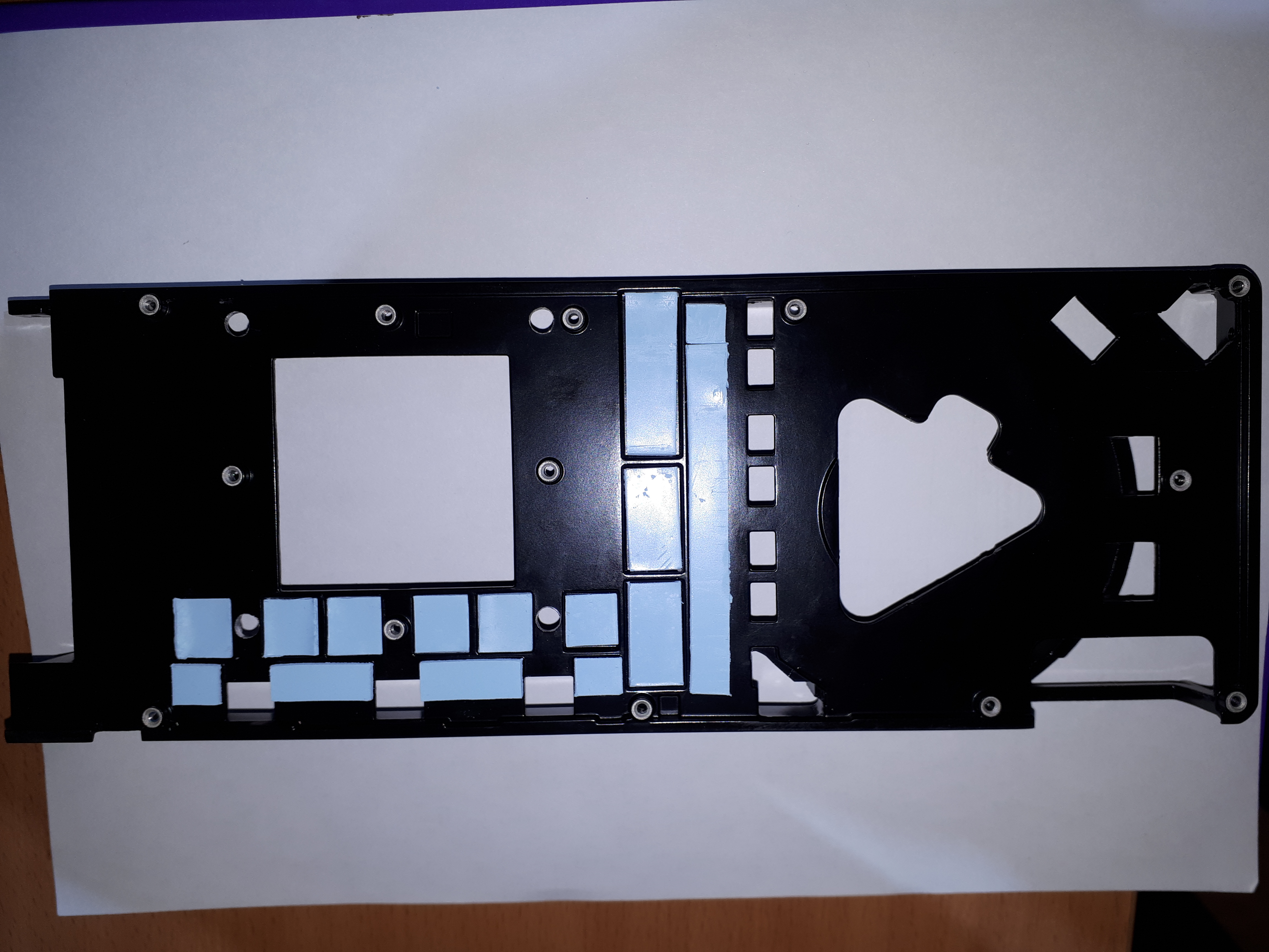 1) Наклеиваем новые 1 мм прокладки на впадины фронтплейта заместо засохших заводских. На элементы обратной печатной платы подойдут 0.5 - 1 мм. Их будет придавливать родной бэкплейт рефа. Я клеил прокладки от Арктика. Бюджетный и хороший вариант.