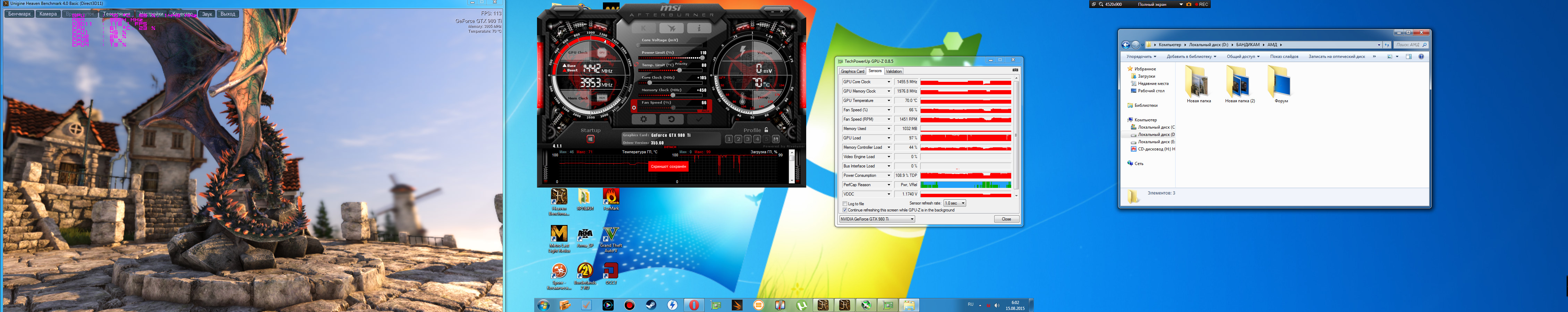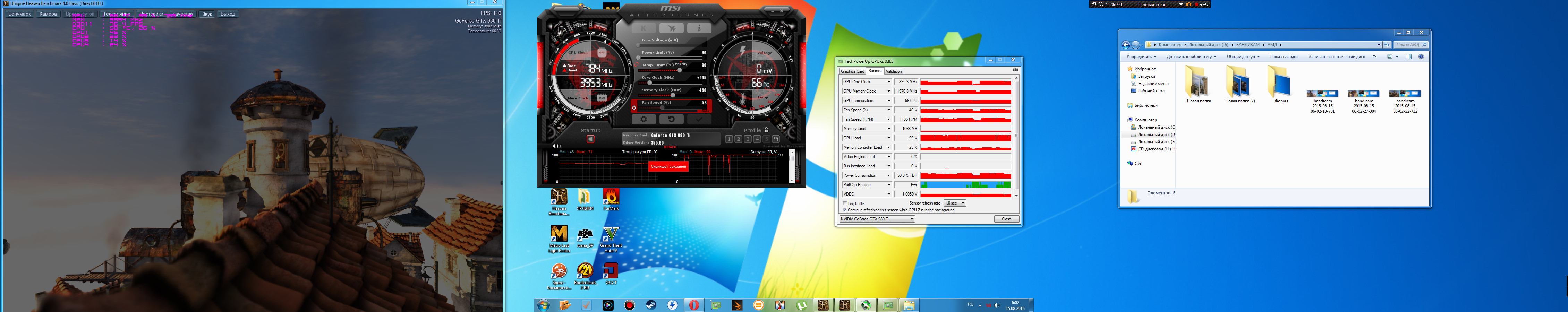 Продолжаю по мере появления свободного времени играться с биосом, даже не знаю зачем я купил тишку если не играю В общем в очередной раз частота ничего не значит, прилагаю скрин ниже где 1460@8400 выдает лучший результат чем например 1500@8400, а если вникать например в тест Heaven, то по итогу очков меньше, НО минимальный fps выше стал аж на 50%, но максимальный ниже на парочку единиц отсюда и итоговая оценка ниже (скрин не прилагаю, поверьте). Оставил 1,23 В, по умолчанию 8000 память, чуть резче работает кулер, все-таки тишка создана для воды Итак, немного статистики, сори что некрасиво #77