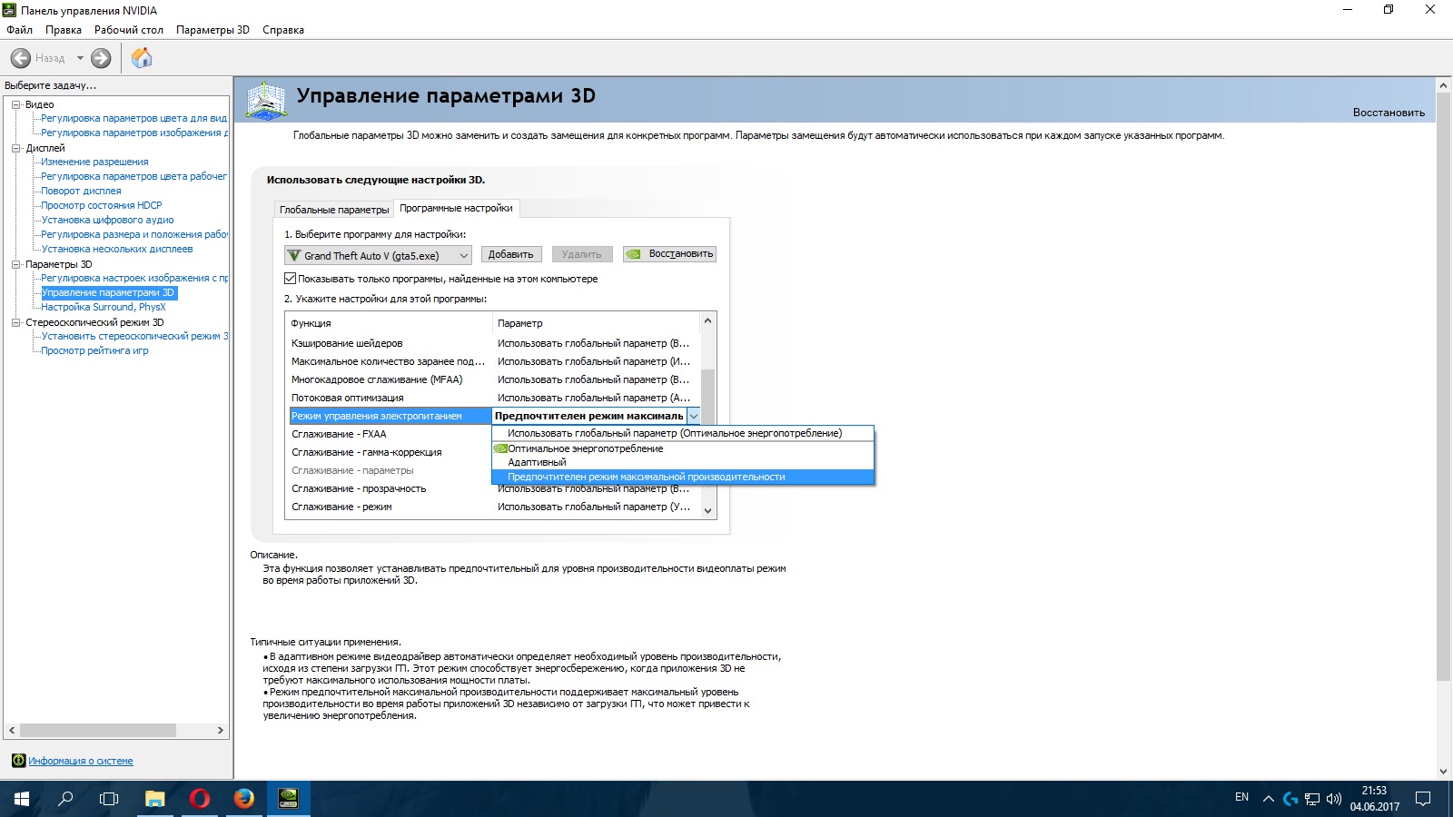 Ну и то, что работает только в OpenGL в драйвере помечено.