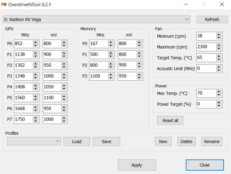 Мдааа. Что-то не даунвольтится моя vega64 никак вообще, дропает частоту гпу до 1100 и памяти до 800...при любом раскладе, причем память не трогал вообще. Прoбовал поднять PL, при этом резко растут температуры а частота плавает и значения такие же как при balanced.