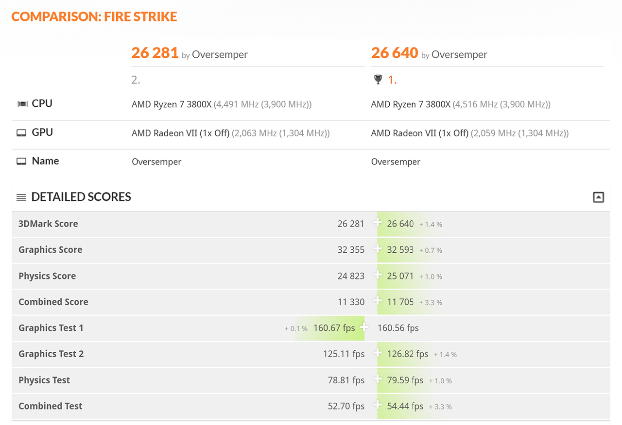 В паре с более слабым процессором я тебя давно обогнал по Graphics Score в Fire Strike! Результат от 20.09.2020, 33 201 балл против твоих 32 593. https://www.3dmark.com/fs/23533359 У меня тоже все на одном контуре.