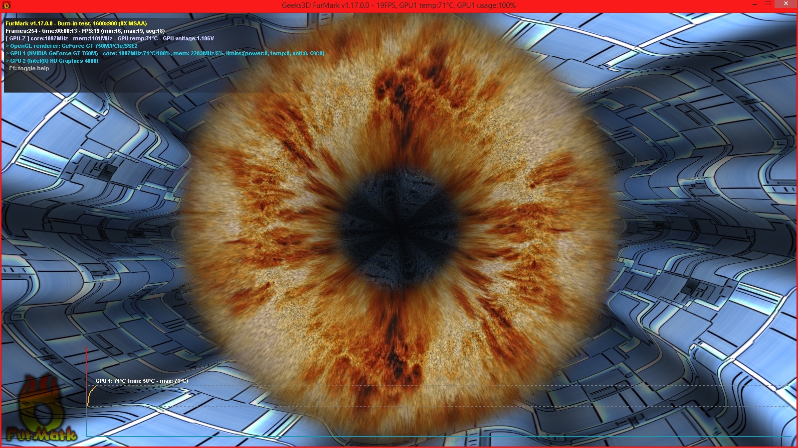А у вас нет никаких мыслей? Инфа о памяти ВК, не может быть записана в основном биосе? Я это понимаю так, если тест логически простой, то и вычислительной мощи для него, высокой и не требуется(во время спокойной езды за рулем можно управлять и одной рукой, а участие в гонках требует 2 руки). При этом фурмарк нагружает ВК на 99% и хорошо её прогревает.