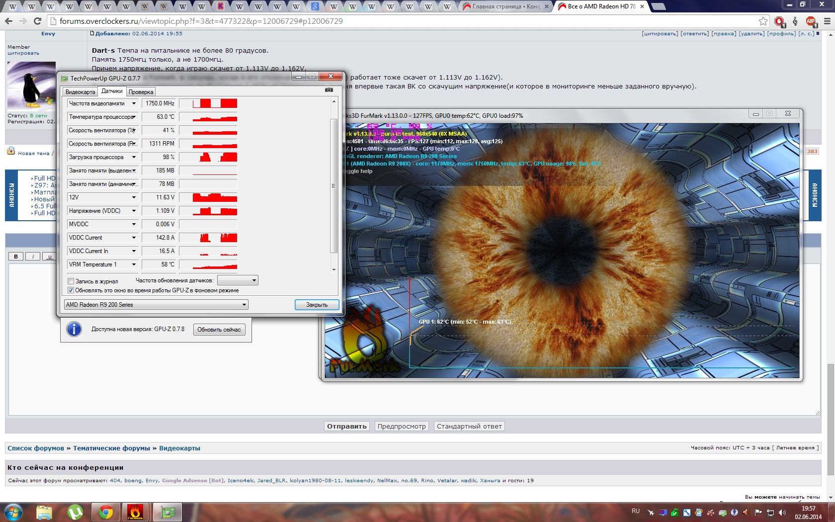 Dart-s Темпа на питальнике не более 80 градусов. Память 1750мгц только, а не 1700мгц. Причем напряжение, когда играю скачет от 1.113V до 1.162V. 1.184V только в Furmark, в секунду, когда я его отключаю(когда он(тест) работает тоже скачет от 1.113V до 1.162V). Т.е. на практике напряжение вообще выше 1.162V не поднимается. У меня впервые такая ВК со скачущим напряжение(и которое в мониторинге меньше заданного вручную). Хотя в Asus GPU Tweek стоит 1.200V.