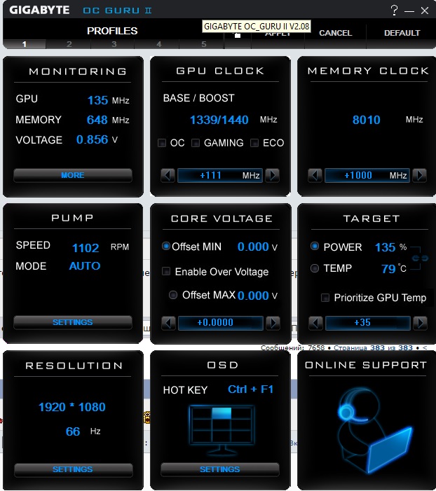 OC GURU II стоит вот скрин - она ничего не дает по обнове биосов там ток разгон, помпа и тд... не тестил на ивике ибо нет поблизости, а смысл, на форуме полно людей с такими камнями и системами на 1366 и у них все норм...