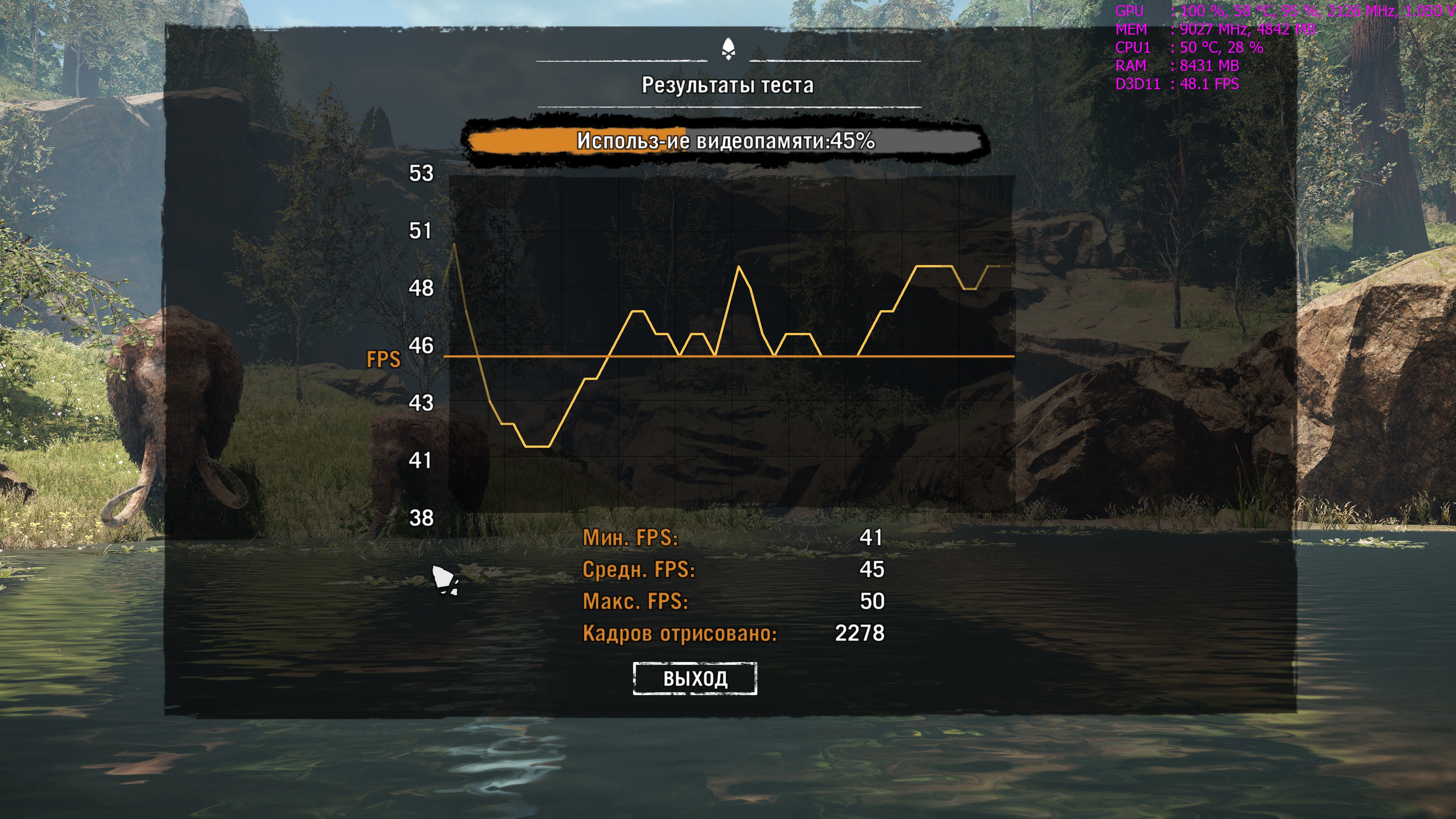 Не , активашка слетела ( я примал не покупал , через друга офф активировал для бенчей ) , остался тока скрин немного не на том разгоне 2126\9000 и настройки не максы , сглажка выкл и туман на один пункт ниже максов , остальное макс , UHD текстуры включены , разрешение 3840 конечно , если ентерессно можешь на таких настройках сравнить Сам думал сравнить разницу между 2126\9000 и 2100\9400 , но не судьба , заморачиваться еще раз активировать , чет лениво