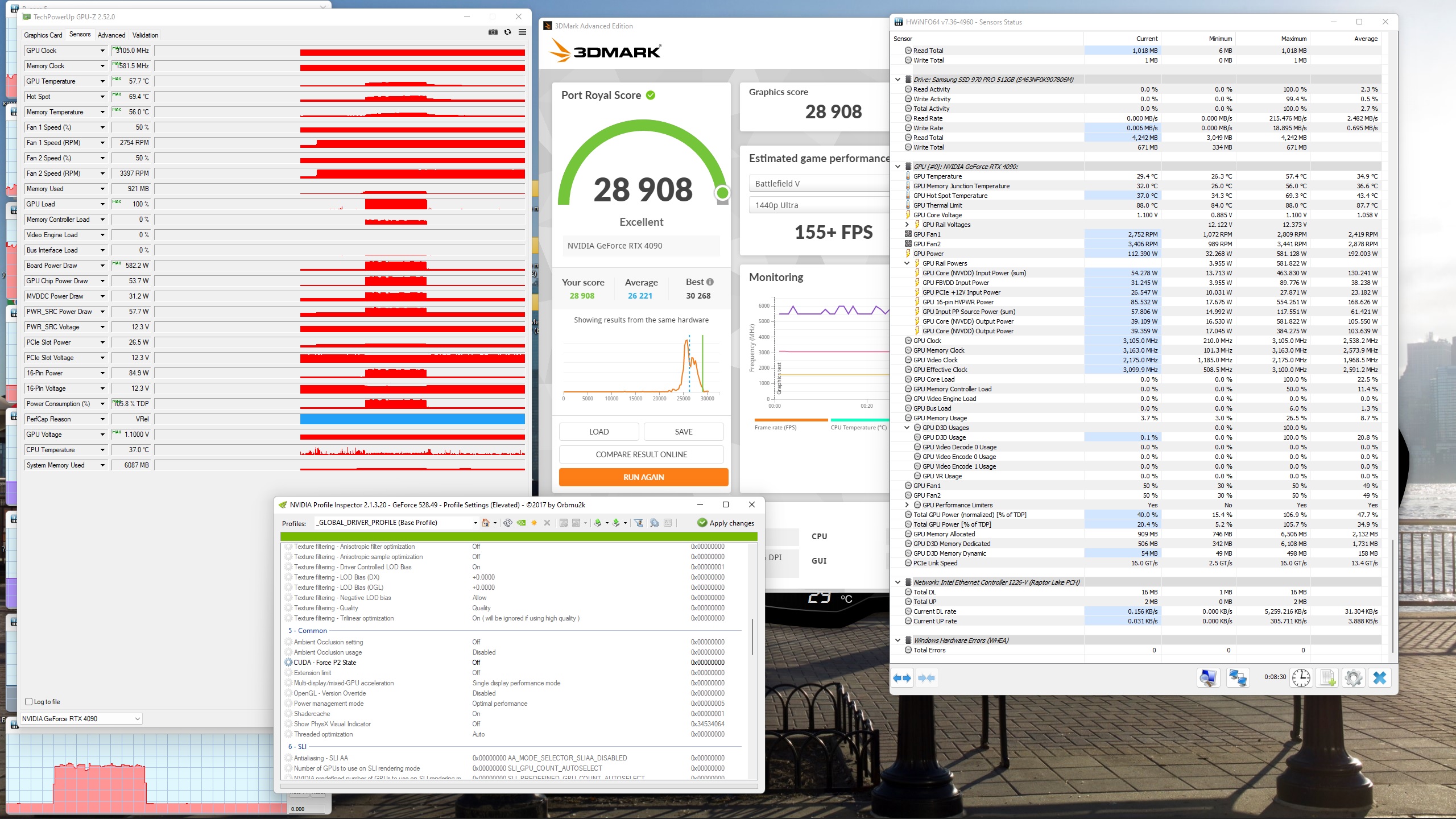 Если убрать гипер, оставить только 8 ядер от 13900к, настроить вкладки производительность, сглаживания и пр.пр. фишки - то тест будет лучше) Я пока чисто смотрю пределы железа у ХОФ. Тем более, что на воздухе, хоть и не плохом. А для теста есть флэшечка))